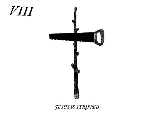 I don’t believe the point of this station is to commiserate on the exposed private parts of the King of Jews. Although I think it is worth taking the time to meditate on the fact that very few depictions of Jesus in art have ever shown him naked on the cross. I completely understand why. In giving reverence to the One we love in his most undignified circumstance, we honor Him with something to cover his nakedness, if only a humbled loin cloth. It’s a completely logical response to a shameful situation.